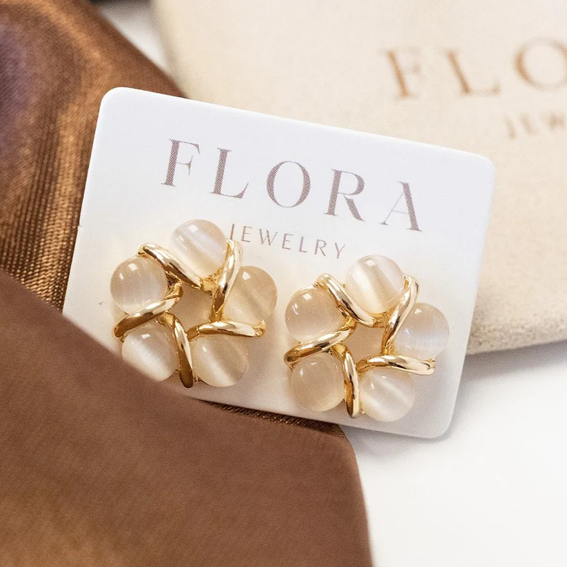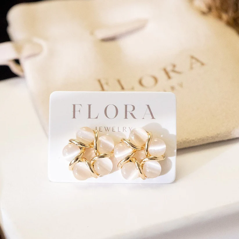 A classic pair of studs with a translucent blush detail, adorned with opal stones for an extra-luxe look. The Fiola Studs give off a polished and upscale vibe, whether dressed down with a t-shirt or dressed up, you decide!