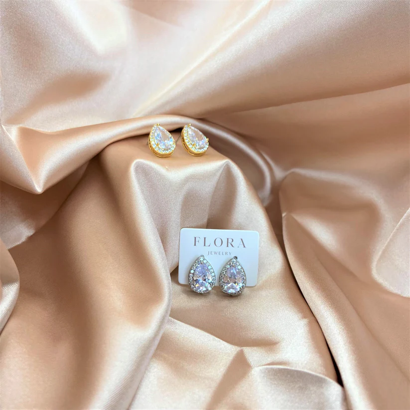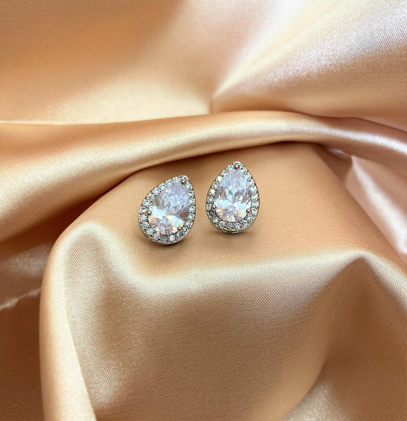 Your classic pear shaped / teardrop studs with a just the right amount of bling! Featuring a luminous crystal centre lined with pave. These babies can be worn casually or dressed up, making them versatile and ready to complement all your looks.