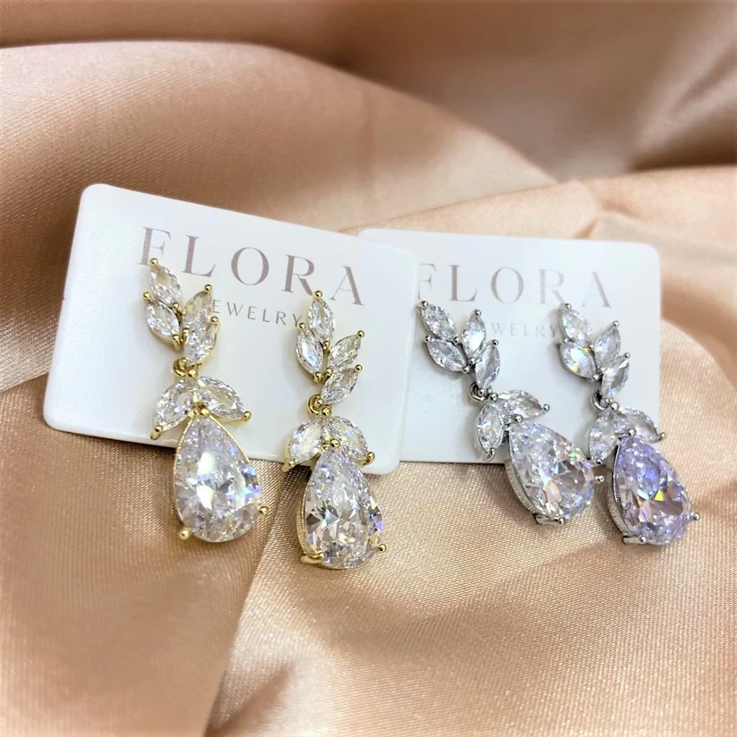 Gorgeous drop earrings with just enough shine to get noticed. A classic and elegant style with floral notes for a playful look. Wear them with your hair pulled back and let them shine.
