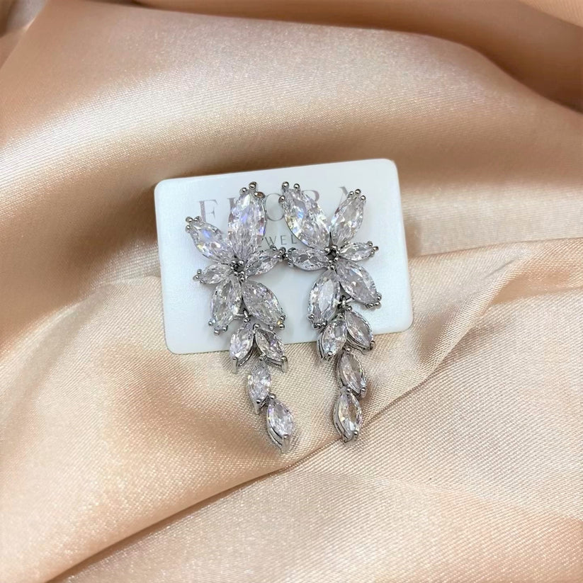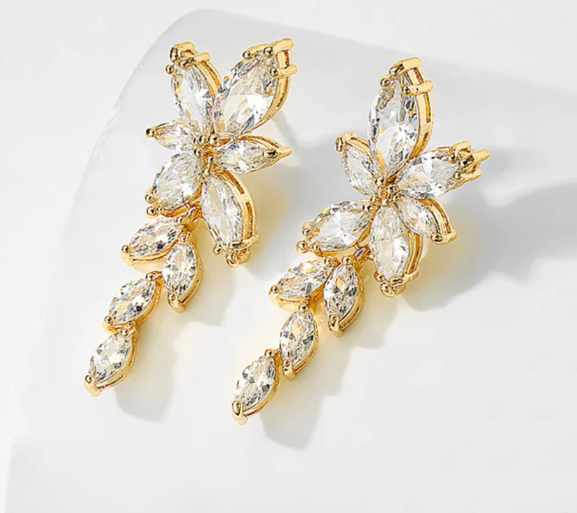 A stunning cluster pair with brilliant, light-catching crystals. Inspired by vines, these statement earrings radiate with vintage charm and sophistication. Wear them out to brunch or to a wedding.