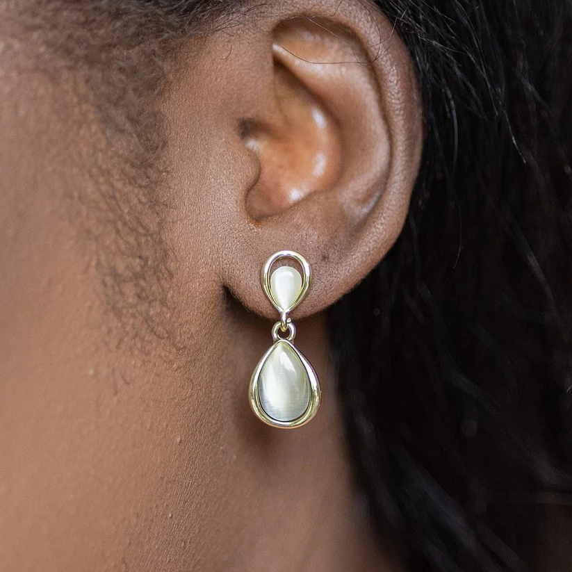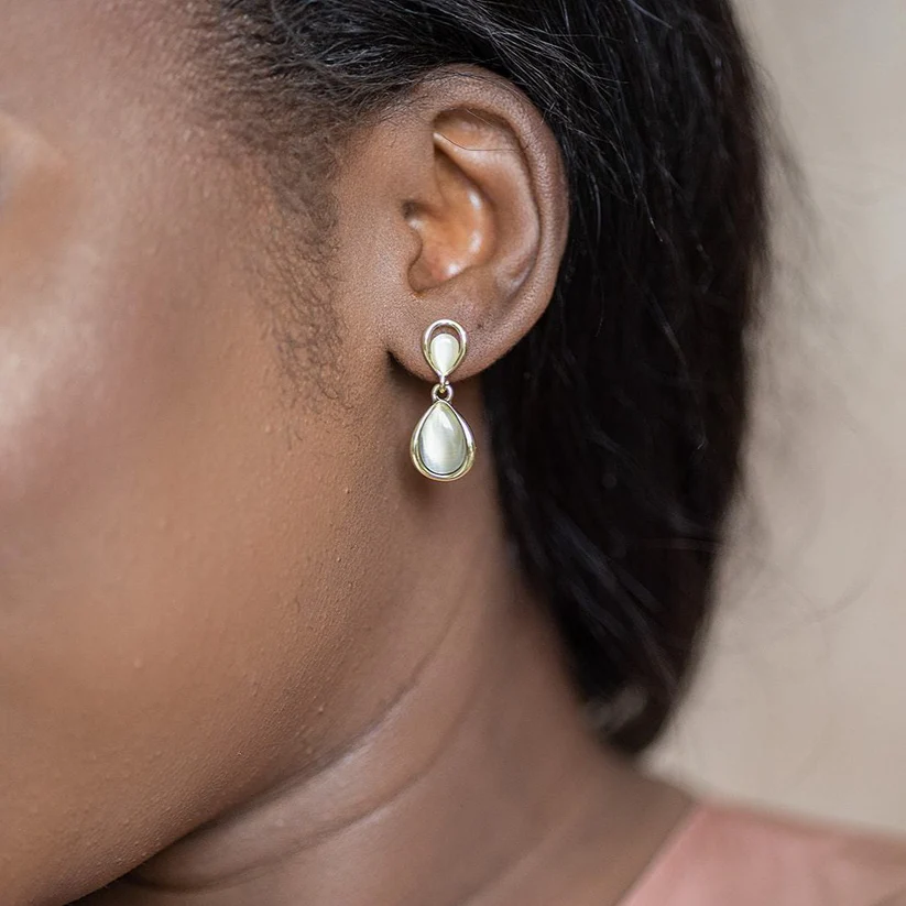 These simple yet classic opal drops are easy to style. Let them delicately frame your face with your hair pulled back.